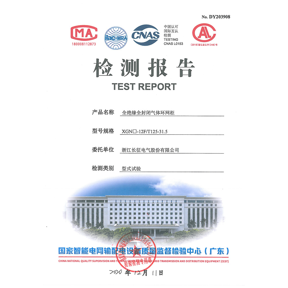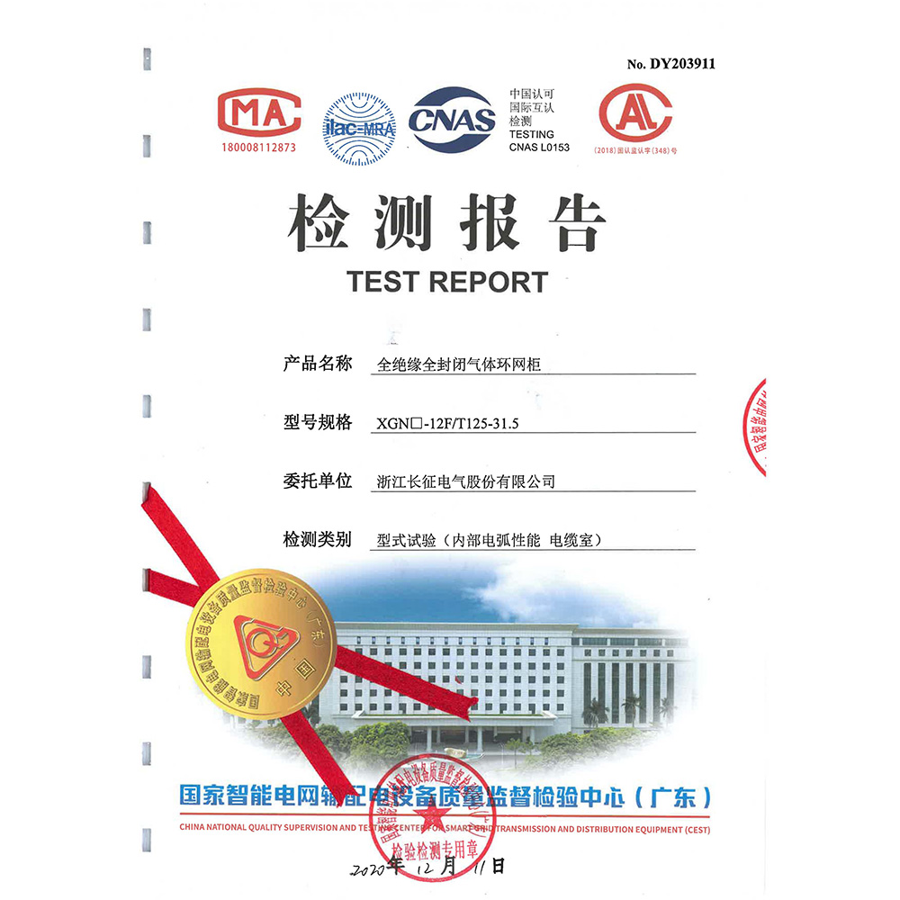 XGN□-12F/T125-31.5全绝缘全封闭气体环网柜 检测报告