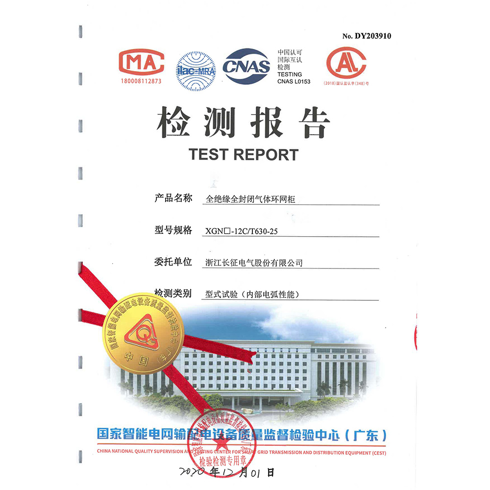 XGN□-12C/T630-25全绝缘全封闭气体环网柜 检测报告