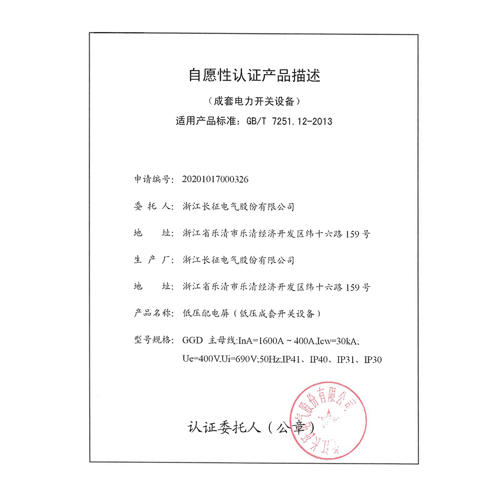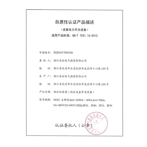 GGD低压配电屏(低压成套开关设备)自愿性认证产品描述