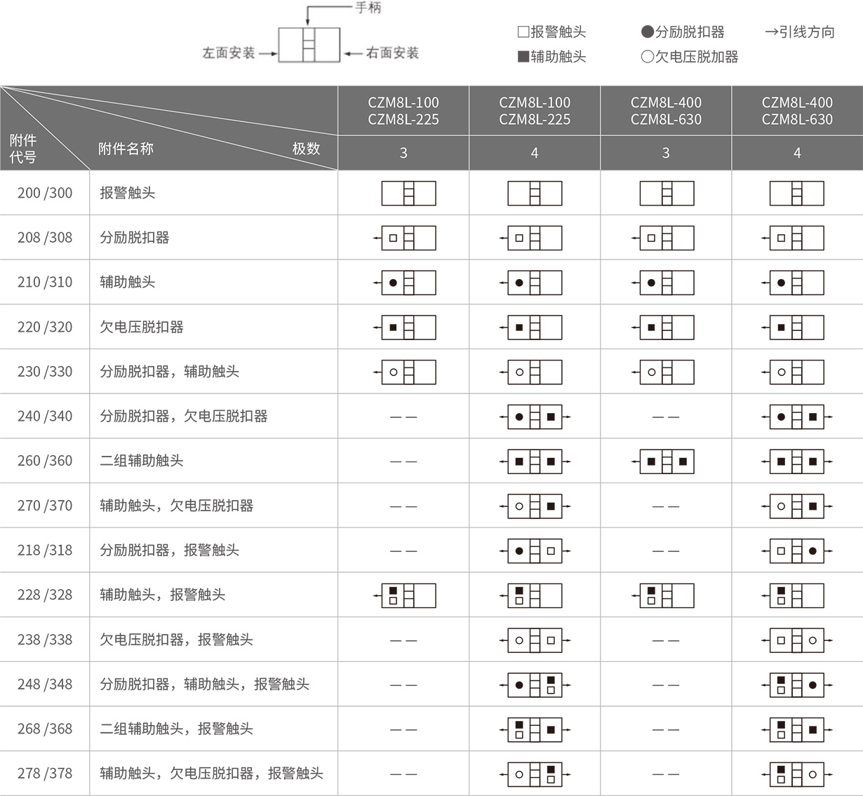 脱扣器方式及附件代号